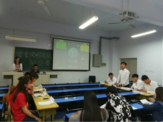 为丰富校园文化生活,倡导积极向上的学院文明, 2017年4月28日中午12点40分,机电工程学院团委学生会主办的“宿舍文明建设”辩论赛决赛于日益楼201教室正式展开。本次大赛以“文明宿舍,你我同行”为宗旨,由机电工程学院团委创新实践部承办,学生会副主席李静,余东豪等人担任本次大赛评委。