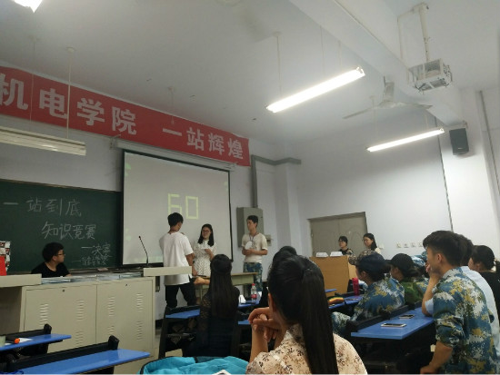 为提高大学生综合素质,扩展学生知识范围。2017年5月11日,机电工程学院开展了“一站到底”知识竞赛。此次活动由机电工程学院团委学生会生活部主办。