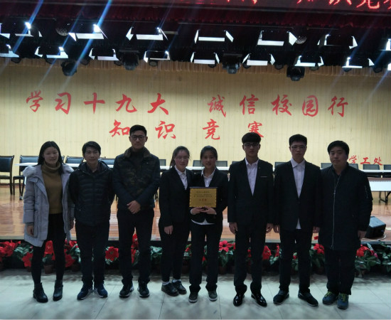此次知识竞赛共有七个学院团队成功晋级,每个团队由四名选手代表参加比赛。以党的十九大精神作为主要出题范畴,在比赛现场,选手积极备战,观众们热情高涨。竞赛通过必答题、抢答题、及风险题等环节,以个人对个人,团队对团队的方式展开激烈角逐。各个队伍均拿出实力,不甘示弱,分数此起彼伏,观众也为选手们绷紧了心弦。在参赛人员的相互鼓励,通力配合下,队员们积极作答,努力缩小与其他团队的分差。最终我院选手不甘示弱,表现出色,荣获竞赛二等奖。