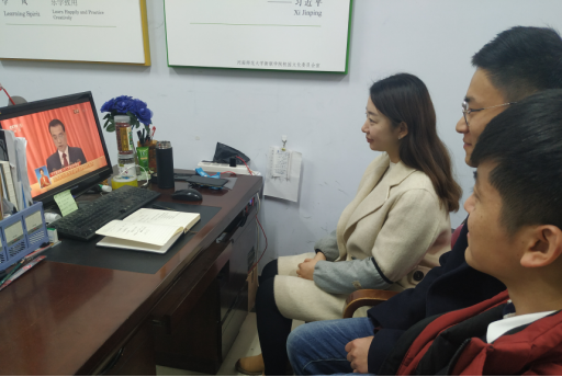 焦元骞辅导员说,“入职来第一个学期,恰逢第十三届全国人大二次会议的召开,我第一次以辅导员的身份观看全国人大开幕会,激动之余更感到沉甸甸的责任。与大家一起观看会议直播,听着总理的政府工作报告,好似是给我们这些新辅导员上的‘入职第一课’。国家迈入了社会主义建设的新时代,我们也踏上了新的征程。新的工作岗位,既是机遇也是挑战。正如总理所言‘实干创造未来’,惟愿在今后的工作中不忘初心、牢记使命,撸起袖子加油干,争做一名‘有理想信念、有道德情操、有扎实功底、有仁爱知心’的辅导员。”