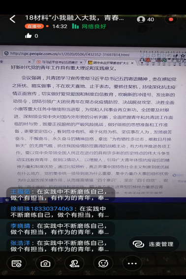 为了 “贯彻小我融入大我,青春献给祖国,助力脱贫攻坚,投身强国伟业”,同时为组织和引导更多大学生正确开展社会实践活动,于8月23日晚上,材料成型及控制工程专业的全体同学在钉钉直播群,召开以“小我融入大我,青春献给祖国”为主题的团日活动。
