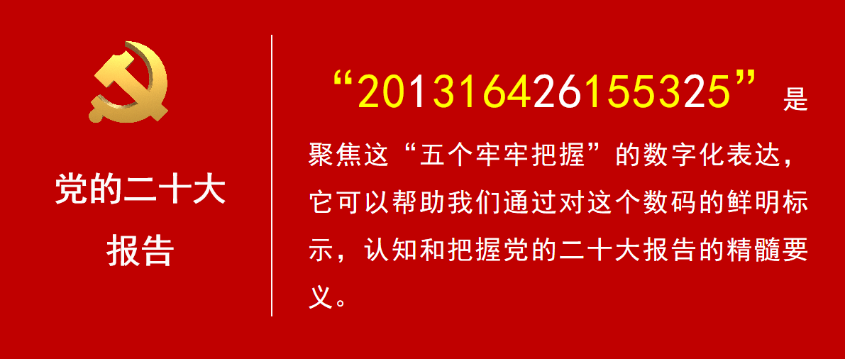 党的二十大报告指明了党和国家事业的前进方向,是我们党团结带领全国各族人民在新时代新征程坚持和发展中国特色社会主义的政治宣言和行动纲领,姜双增以“201316426155325”对标“五个牢牢把握”,带领参会学生认知和把握党的二十大报告的精髓要义,使全体青年要在党的旗帜下团结成“一块坚硬的钢铁”,心往一处想、劲往一处使,推动中华民族伟大复兴号巨轮乘风破浪、扬帆远航。“201”阐述二十大的战略定位和大会主题是党和国家事业发展的总纲,“3164”系统回顾总结过去五年和新时代十年的伟大变革经历的三件大事、十六个方面的历史性成就和四个里程碑意义,“26”阐明马克思主义中国化时代化的两个结合和把握新时代中国特色社会主义思想的世界观和方法论的六个坚持,“1553”是以中国式现代化推进中华民族伟大复兴的中心任务、中国式现代化五个中国特色和坚持的五项重大原则,“25”对标党的全面领导和全面从严治党及全党必须牢记的五个必有之路。