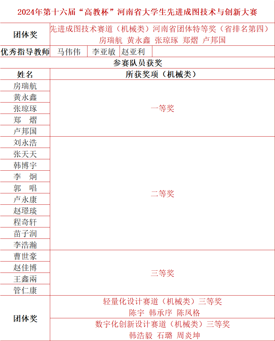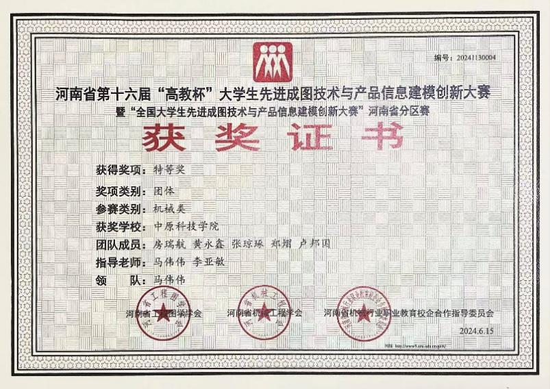 5月25日,由河南省科学技术协会支持,河南省工程图学学会、河南省机械工程学会、河南省机械行业职业教育校企合作指导委员会主办,河南理工大学机械学院、高等教育出版社、厦门卡伦特科技有限公司、河南维京电子科技有限公司等单位协办的第十七届“高教杯”全国大学生先进成图技术与产品信息建模创新大赛河南赛区选拔赛采用“线上线下”相结合的方式顺利举办。我校理工学部机电工程学院师生在第十六届河南省“高教杯”先进成图技术与产品信息建模创新大赛中获得“团体特等奖”,排名第四,成图赛道个人获得一等奖5人,二等奖10人,三等奖4人。轻量化赛道和数字化设计赛道获得省级三等奖。