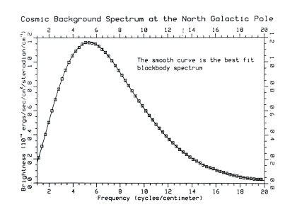 宇宙背景辐射形成的黑体谱,1990年,美国国家航空航天局