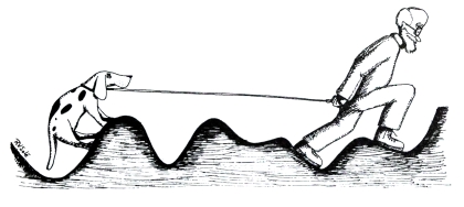 理查德·索雷的画阐释“缓慢改变,继而突然崩盘”的一般性规律的原因。这种现象出现在拥有很多平衡状态的进化系统中,他们潜藏在外界施加的影响下运动。在这种情况下,外力是灵活的,平衡点位于波形的谷底。每次狗被拉到山顶上时,就会发生突然下滑。