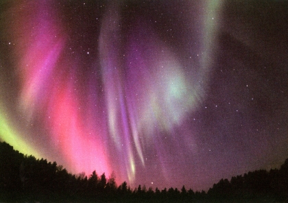 飞过的太阳风粒子激发了地球大气层中的原子,它们随后以光的形式把剩余能量释放出来,形成了无与伦比的空中“灯光秀”,我们将之称为“北极光”。氧气撞击会产生绿色和红色的光,而氮气会产生淡紫色、蓝色和粉色的光。