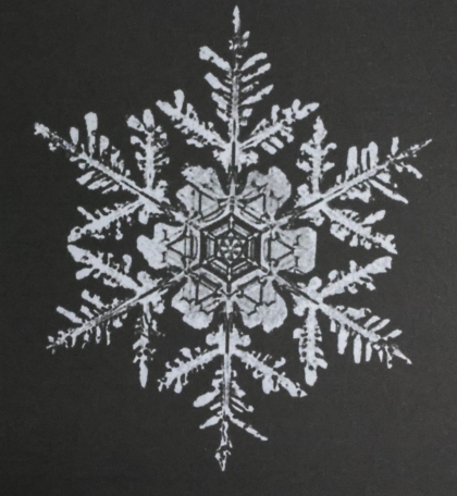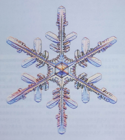 雪花的现代特写镜头照片,展现了雪花“几乎”六重对称的结构,揭露了雪花臂内部和彼此之间细微的不对称之处。至今仍有许多关于雪花的有趣谜题:雪花每条雪花臂的尖是如何“知道”其他“同伴”的长度的?是什么样的过程保持了每条雪花臂步调一致地伸长?