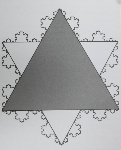 在等边三角形每条边的中心都构造出另一个三角形,后者边长为前者边长的三分之一。同理,在新三角形的每条边上也这样做,每一步后,每个三角形都会再生出3个三角形,永远重复下去就得到了“三角雪花”结构。1904年,瑞士数学家赫尔吉·冯·科赫在一篇论文中展现了自己的这一发明。