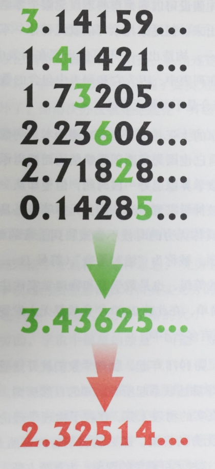 康托尔的对角论证法证明了无限小数集合是不可数的。他先假设这些数是可数的,并将其都放入一个列表中。从每个数中拿出一位数组成一个新数。