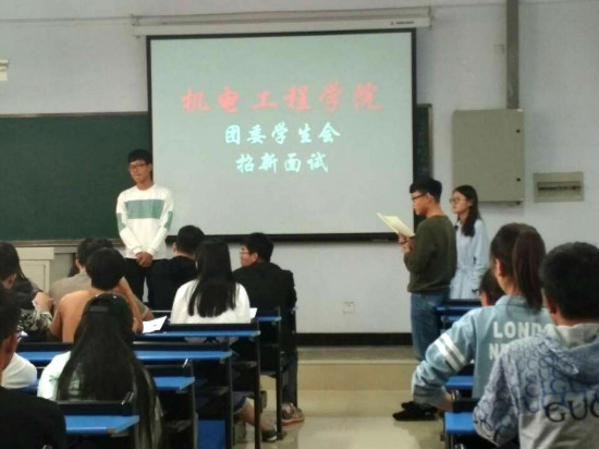 招新现场气氛相当火爆,面试工作紧张而有序的进行,各个环节有条不紊的开展。同学们先是上台做了简单的自我介绍,便全力展现自己的才能特长,吸引面试官的眼球。前来面试文艺部的同学毫不吝啬地一展歌喉;面试网信部的展现出自己对电脑的精湛操作;面试组织部公关部的表现出自己强大的交际组织能力等。各部门面试人员也十分认真地准备了与本部门特色相结合的一系列问题来考核应选者前来面试的同学们。认真筛选,一丝不苟,争取做到人才不被埋没。应选同学也是应对自如,在被提问中充分展现出内涵、胆量、机智、自信的风采。