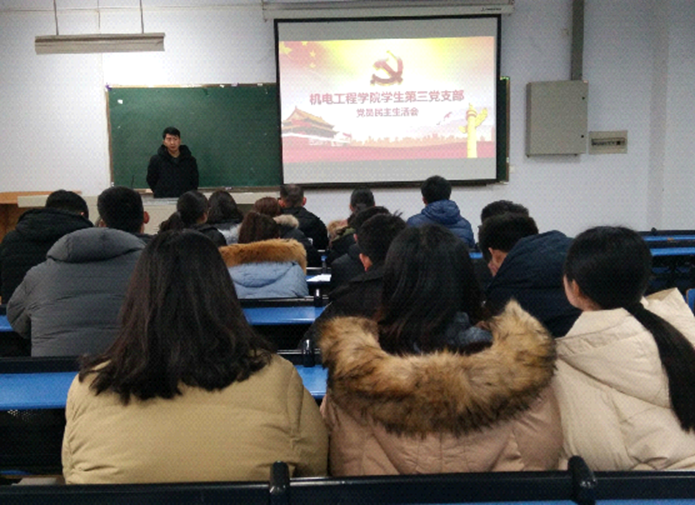 2018年12月27日,机电工程学院学生第三党支部在日益201教室召开民主生活会,支部全体党员及入党积极分子参加会议。