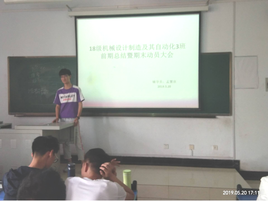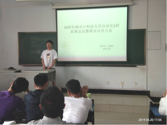 2019年5月20,机电工程学院孟老师通过大一下班学期的活动还有班级所表现出来的状态,要求机械设计制造及其自动化三班总结下班学期的工作以及工作过程中存在的问题,并且要求提出具体的解决方案,并且鼓励学生投入期末学习以及各科的复习当中。