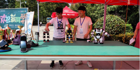 “机电工程学院欢迎2019级新同学!”在日益楼前,红色的迎新条幅高高悬挂,迎接小19的到来。机电工程学院迎新处,由慧鱼工作室研发的机器人不停地为新生送上祝福语,吸引了不少人驻足观看。历年的大赛证书、奖杯见证着机电工程学院建校以来的优异成绩,同时也鼓励着新同学创造更加辉煌的成绩。机电工程学院团委负责人魏屹老师说到:“这样的迎新方式既展现了我们院系的特色,也为新同学展示了我们的热情,希望给大家带来不一样的感受。”