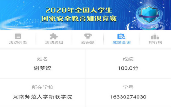最后,进一步增强师生维护国家安全的意识和能力,提高活动的针对性和实效性,让学生把安全知识牢记心中,各年级、专业组织学生参与“2020年全国大学生国家安全教育知识竞赛”答题活动。