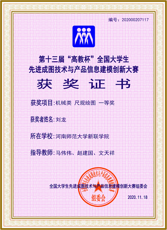 在疫情防控常态化的形势下,本次大赛采用线上线下相结合的创新模式开展,并通过教育部高教平台同步直播。我校机电工程学院代表队刘龙、白世龙、徐永明、徐威龙和于海畅5位同学,在指导老师马伟伟、赵建国的带领下,经过紧张激烈的比赛,获得国家级一等奖1项、二等奖2项、三等奖3项和机械类团体三等奖。