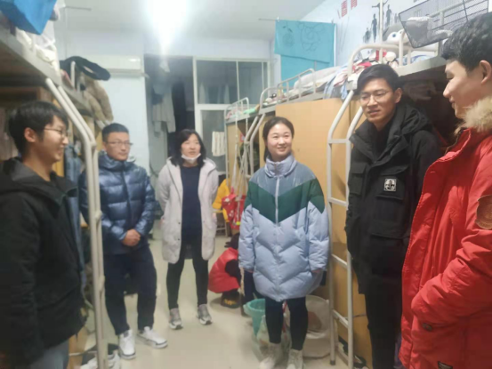 在学生宿舍,李书记详细询问学生考卷的难易程度,了解考生考试的状态,并代表学院领导、老师向全体考研学生表达了关切之情。她指出,学校高度重视学生升学深造工作,一直以来,学院尽可能在思想、学业、生活等方面为考研学子创设条件,做好服务保障。毕业班辅导员鼓励同学们要坚定考研信心,在最后的冲刺阶段坚持不懈,在下一场的考试中出色发挥,取得理想的成绩,不负众望。