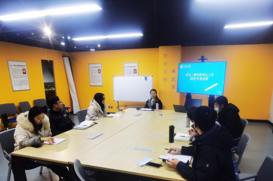 12月27日在中原科技学院双创科技园B区,机电工程学院召开2021年度学生工作述职大会。院长助理李欣洁和全体专兼职辅导员参加会议。