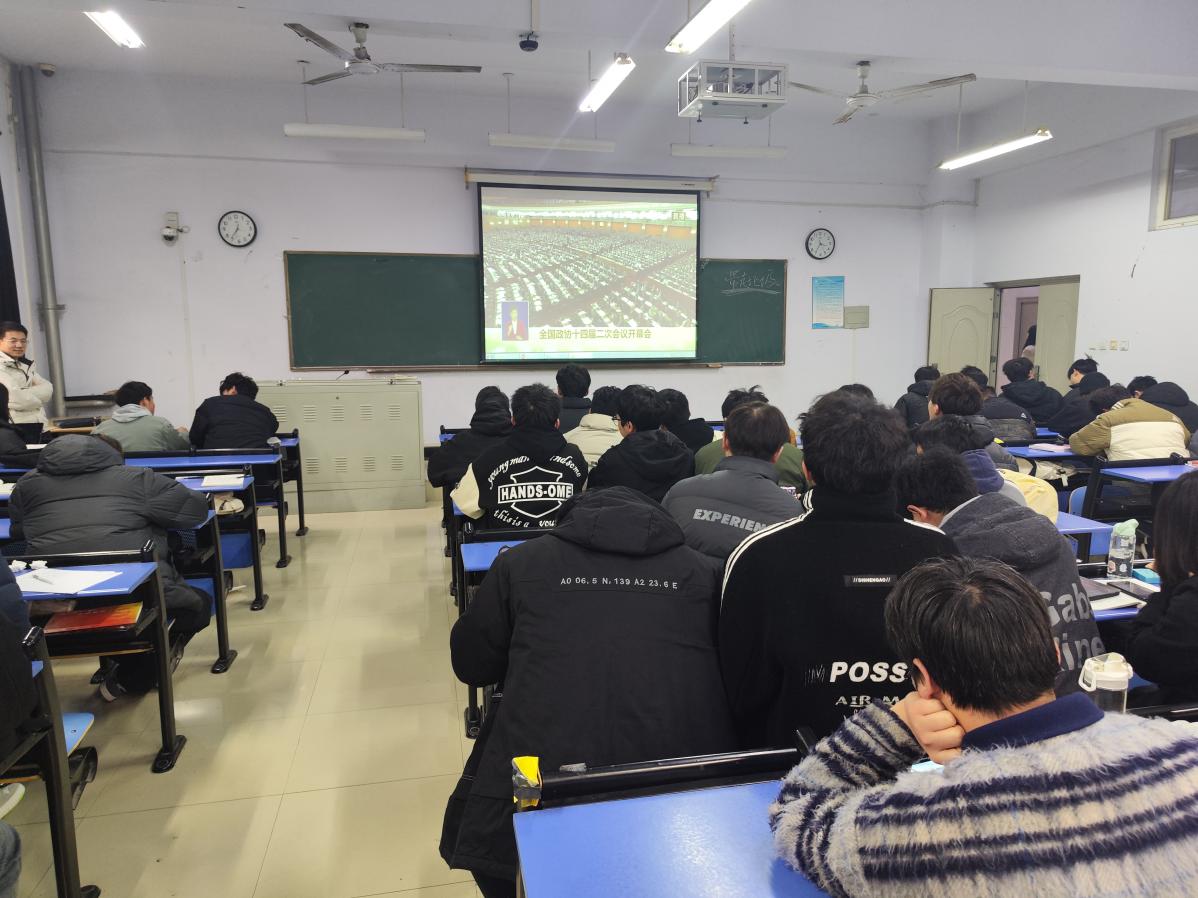 机电工程学院全体党员及党员发展对象学习两会精神。今年是我国成立七十五周年,是实现“十四五”规划目标的关键一年,推进中国式现代化建设前景壮阔任务艰巨。东风浩荡疾驰远,大潮奔涌奋楫先。作为党员干部应以一以贯之的韧劲、躬身入局的干劲、披荆斩棘的闯劲,奋力为强国建设、民族复兴伟业注入强劲新动能。两会上也深入贯彻党的二十大关于党和国家事业发展大政方针和战略部署的精神高举旗帜、凝聚力量、团结奋进。