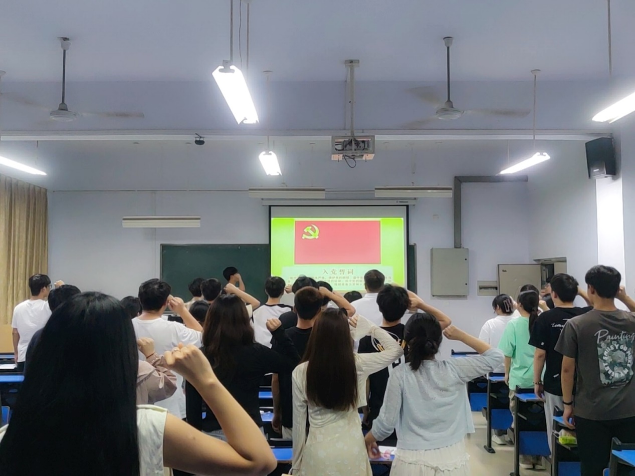 最后,机电工程学院学生第一党支部书记海龙飞带领支部全体新老党员重温了入党誓词并对会议作出总结。