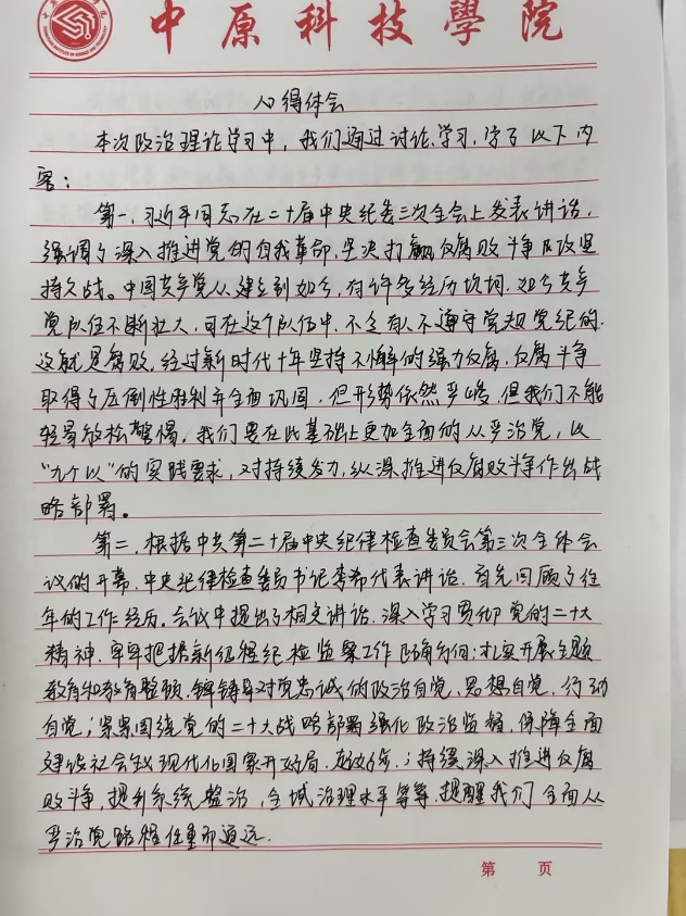 赵丽明同志指出,身为思想政治辅导员,在课堂上,通过多种渠道,向学生宣传爱国主义教育的重要意义和政策措施,提高学生的知晓度和参与度,增强大学生对党和政府的信任和支持,培养学生的政治意识和社会责任感。在课余时间开展与爱国主义教育的研究工作,为政府决策提供理论支持和实践建议,坚持以习近平新时代中国特色社会主义思想为指导,全面贯彻落实党的二十大精神,巩固拓展学习贯彻习近平新时代中国特色社会主义思想主题教育成果,深入学习领会习近平法治思想和习近平总书记关于教育的重要论述,更加深刻领悟“两个确立”的决定性意义,增强“四个意识”、坚定“四个自信”、做到“两个维护”。