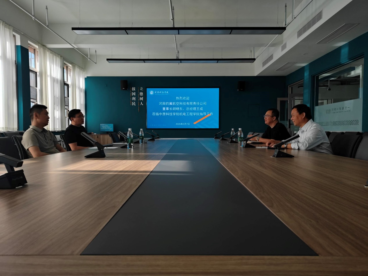 河南钧翼航空科技有限责任公司董事长胡晓东、总经理王成来访机电工程学院