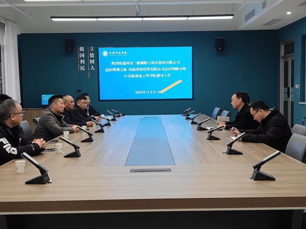 2025年12月31日下午,河南三维圈数字科技集团有限公司总经理周玉秋、河南鼎铭管理有限公司总经理陈小明一行莅临机电工程学院,开展考察交流活动。机电工程学院院长苏建修教授主持本次活动,学院部分教师代表陪同考察并参与交流。